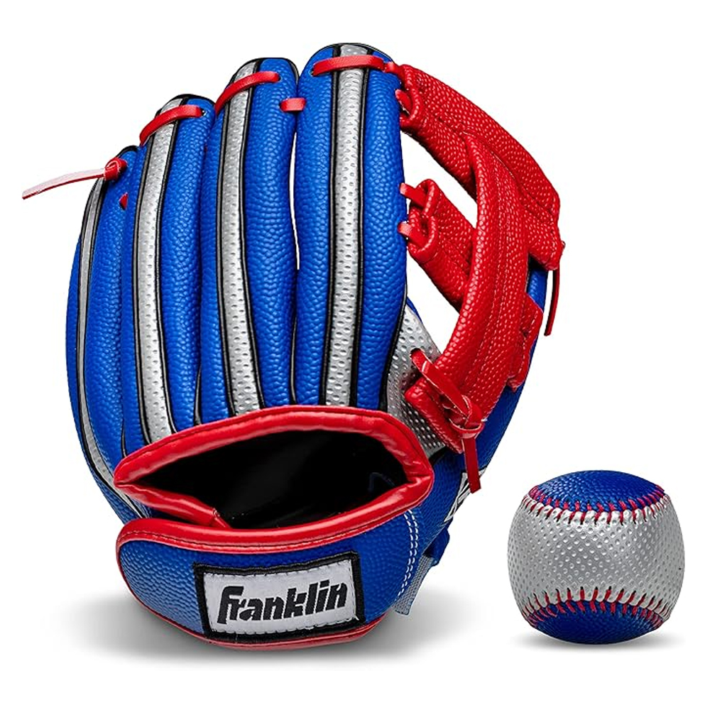 • 프랭클린 스포츠 에어테크 폼 유소년 9인치 야구 글러브 공 세트 (블루/레드/실버) 6844S1F1
